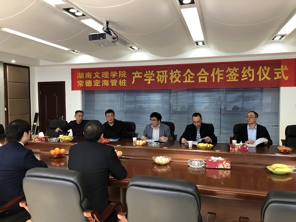 2020年3月,常德定海管樁有限公司與湖南文理學院簽訂產(chǎn)學研合作協(xié)議。總經(jīng)理陳吉果與學院領(lǐng)導現(xiàn)場簽約并授牌。