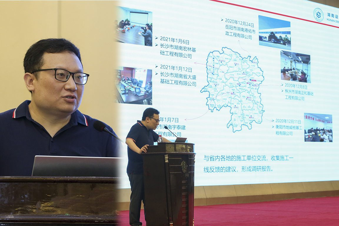 本次會(huì)議核心宣貫環(huán)節(jié),由本規(guī)程主編成員湖南省建筑設(shè)計(jì)院集團(tuán)有限公司副總工程師陳宇宣講,本規(guī)程共有15家單位參與,主要編寫(xiě)和審查人員46人,內(nèi)容共6章、11個(gè)附錄、218項(xiàng)條文,本規(guī)程重點(diǎn)內(nèi)容(應(yīng)用范圍)--適用于湖南省建筑工程中預(yù)應(yīng)力混凝土空心樁的勘察、設(shè)計(jì)、施工、質(zhì)量檢測(cè)與驗(yàn)收。交通、水利、市政等領(lǐng)域采用預(yù)應(yīng)力混凝土空心樁時(shí)可參照使用。